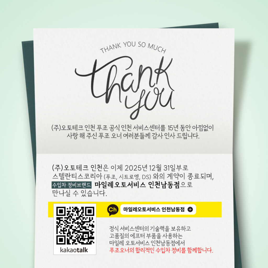 푸조/시트로엥 인천서비스센터에서 알려드립니다.